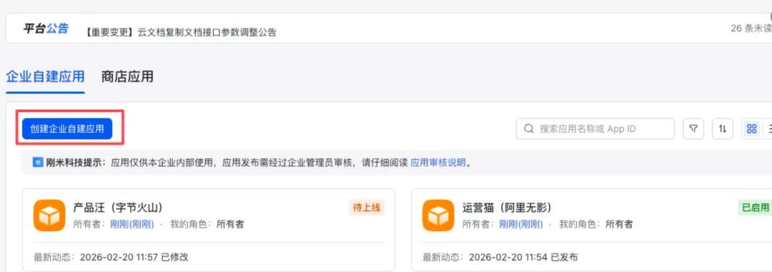 2)选择【创建企业自建应用】