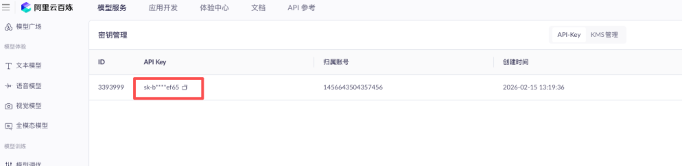 1)获得API-Key通过以下地址直接访问百炼平台的“密钥管理”;