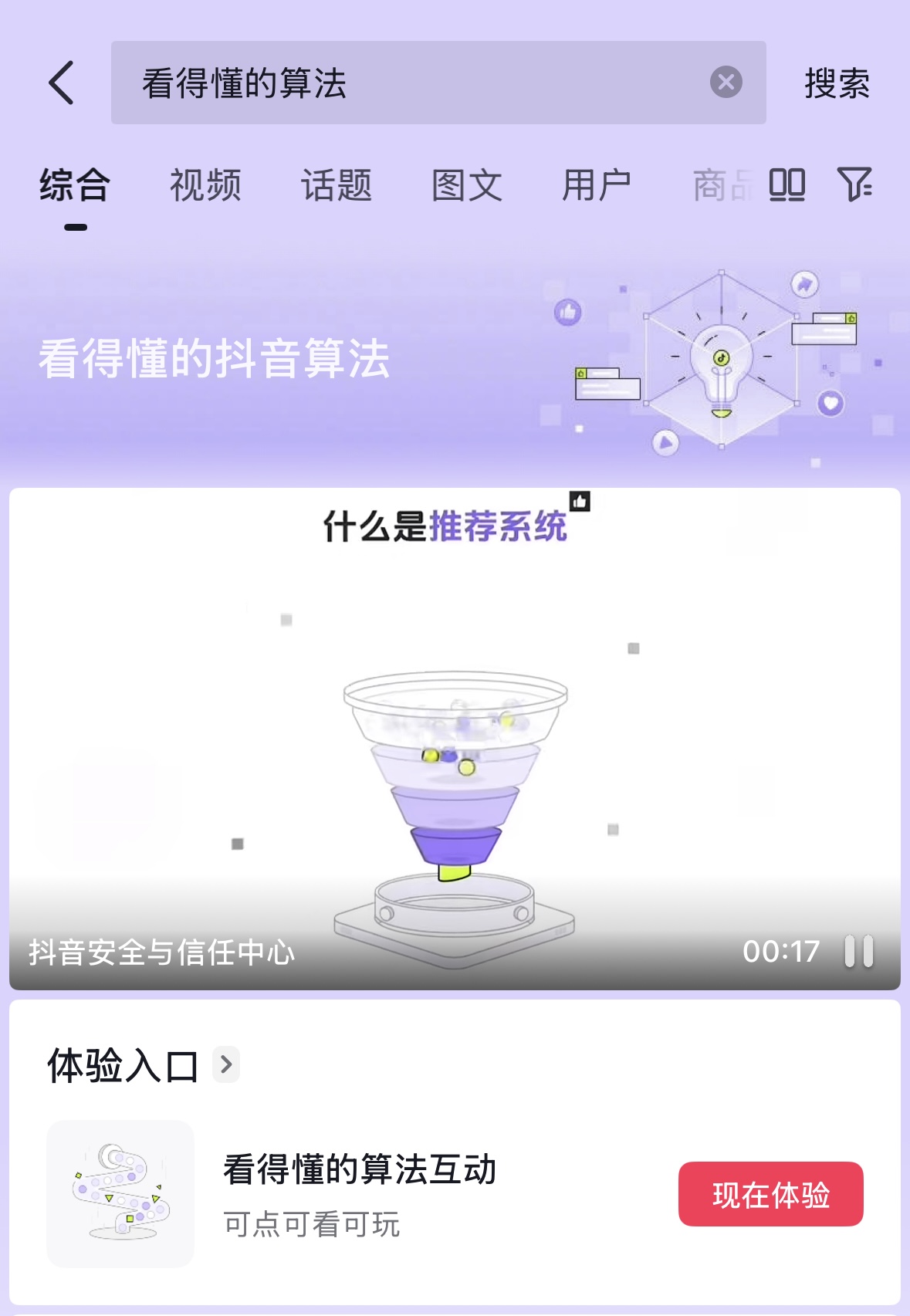 就在前些天,有朋友就提醒我,在抖音App上搜“看得懂的算法”,就能看到抖音算法推荐的基本原理。我体验了一番后,最大的感慨便是:这届算法虽然没成精,但它已是成熟的AI技术,学会自己去对抗“算法制造信息茧房”的偏见了。