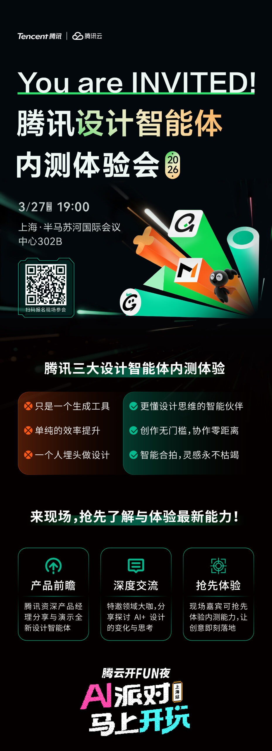 本次活动聚焦腾讯三大设计智能体内测体验,您将有机会第一时间感受其强大的功能和创新的设计理念。