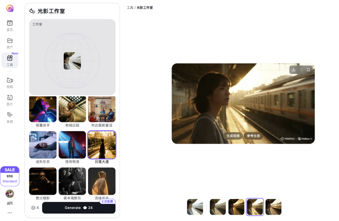 我最近发现海螺内置了一个新的功能,一个电影级实时打光系统,Light Studio 光影工作室。