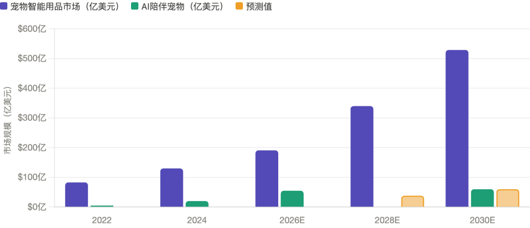 数字本身或许有些枯燥,但背后的趋势值得重视:到2030年,全球AI宠物市场预计将达到60亿美元,而更广义的AI陪伴领域,预测区间则被拉宽到700亿至1500亿美元。这已经不太像一个小众赛道,而更像一个正从“展会噱头”逐步进入日常生活的新物种。