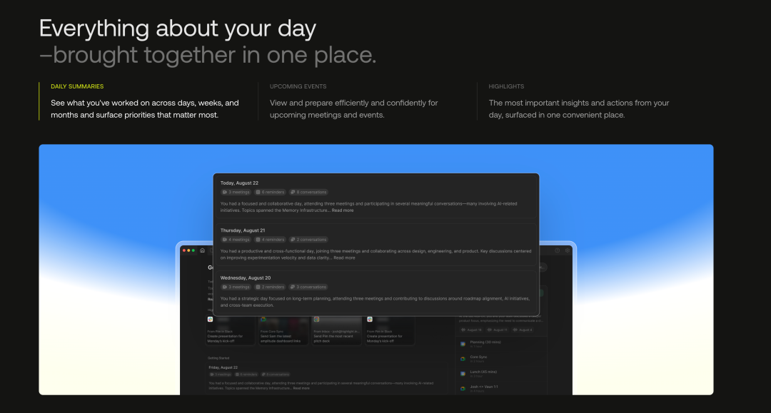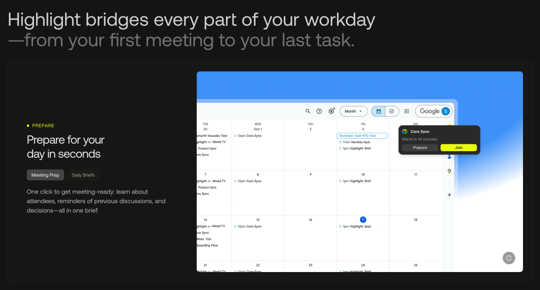 Highlight AI 的方法让我眼前一亮,因为他们不是在现有工具上再加一层 AI,而是在构建一个全新的基础设施层,一个能够统一所有工具、保存完整上下文、主动提供协助的”共享智能层”。
