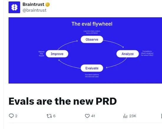 Braintrust 发了一篇文章,标题六个字:Eval 就是新的 PRD。