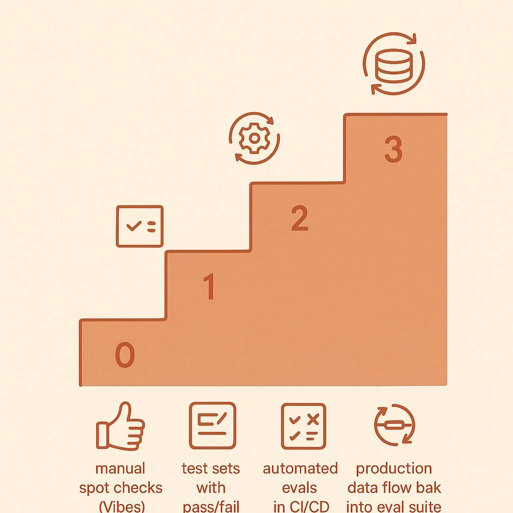 Eval 成熟度四阶梯:从人工抽查(Vibes)到线上数据持续回流的飞轮