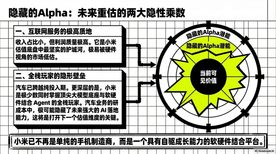 小米不是单纯的手机股,也不是纯互联网股。它更像“硬件现金牛 + 高利润互联网 + 已跑通的汽车新业务 + 一包金融投资资产”的混合体。