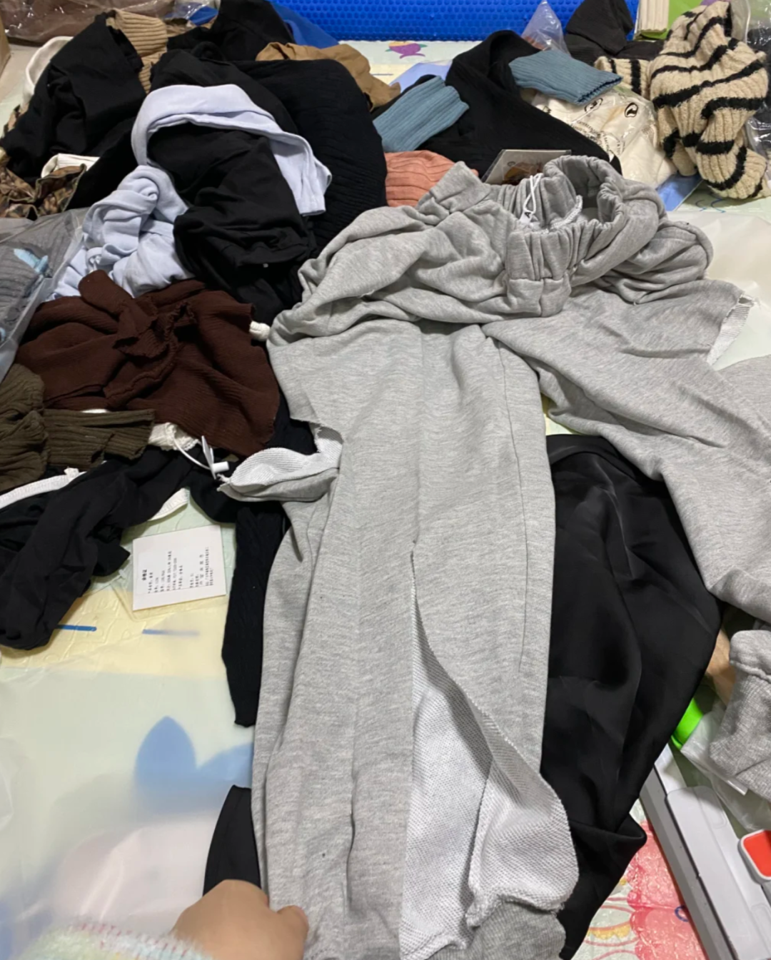 这些货已经在市场上流通一遍了,会有码数不齐、款式不全等情况,但对消费者影响不大。直播间里那些号称孤品样衣的商品,显然不是真正的尾货,更不是新品,而是二手回收衣物。”