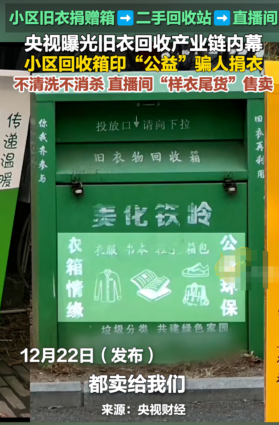 直到现在她们才知道,小区里的旧衣回收箱,竟是灰色产业链的起点。