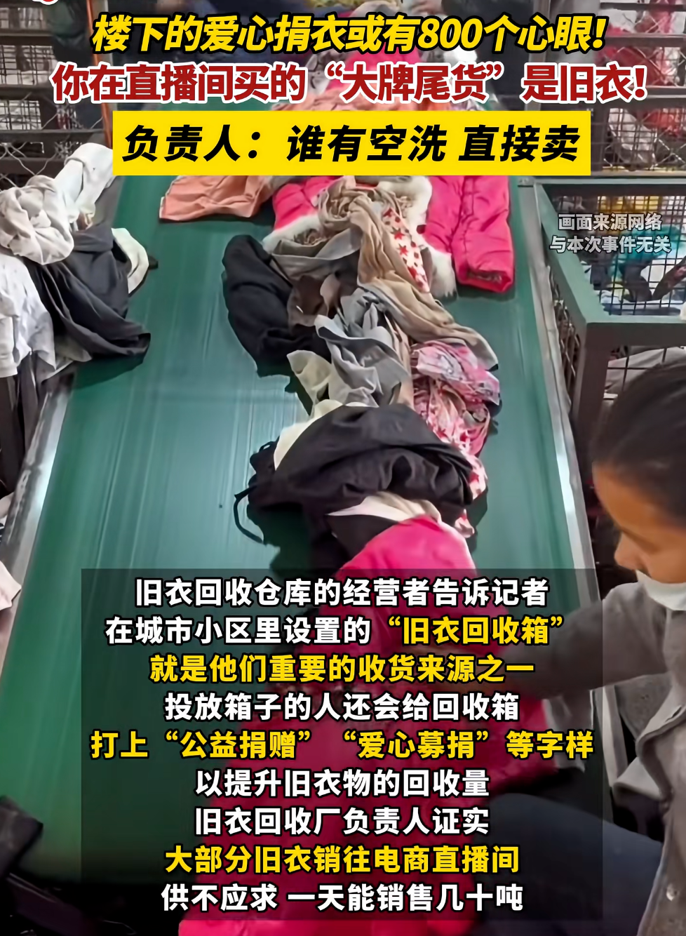 2025年12月21日,央视财经调查报道过旧衣回收产业链的内幕。