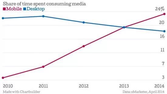 数据也支持移动客户端日趋成为主要的互联网访问方式的观点。目前,每台移动设备安装的客户端平均数量已经增长至40至60款。