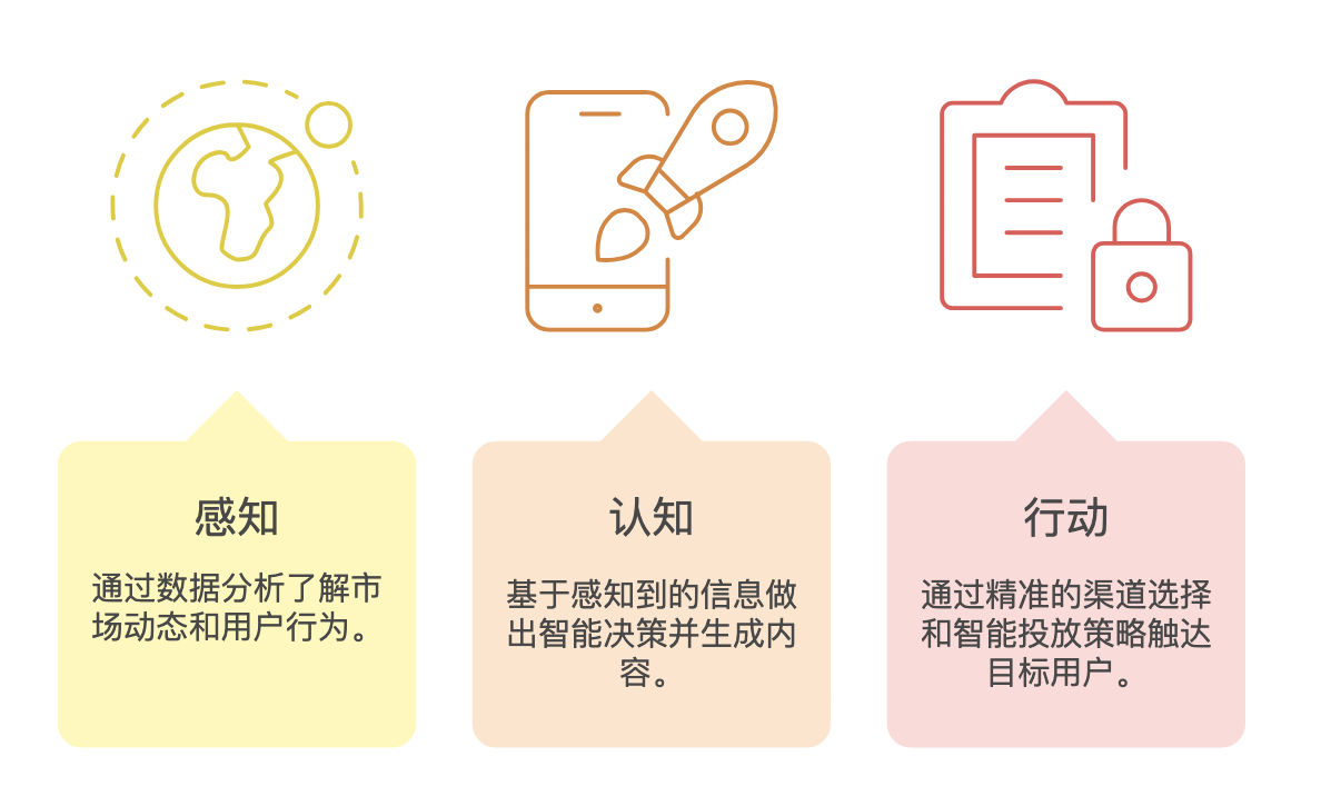 提升营销生产力需要一种系统化的思维,将三大要素整合为一个有机整体。领先的技术公司已经提出了智能营销的新范式——“感知-认知-行动”系统 。