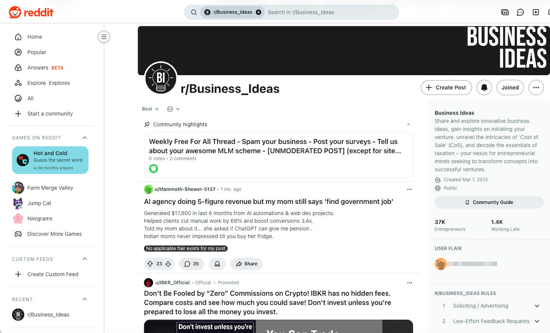 如果你做的是 B 端产品或正在创业,那一整片和经营相关的 subreddit,很可能比“炒股版块”对你更有价值。技术类的 r/technology、r/programming、r/netsec、r/machinelearning 等,可以帮你判断某种技术或工具在用户端的真实口碑:大家为什么喜欢某个框架?为什么对另一个工具始终有意见?创业和小企业相关的 r/Entrepreneur、r/startups、r/smallbusiness、r/sidehustle,则是一个天然的“问题清单生成器”,里面充满了这样的帖子: