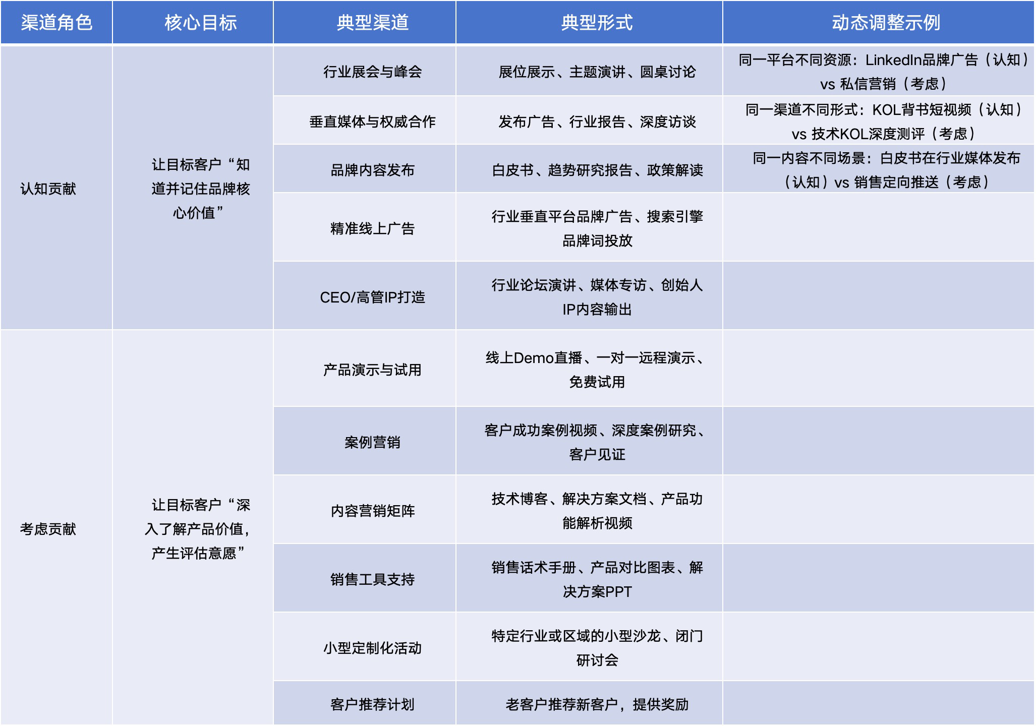 同一内容不同场景:白皮书在行业媒体发布侧重认知,而通过销售团队定向推送给潜在客户则侧重考虑。