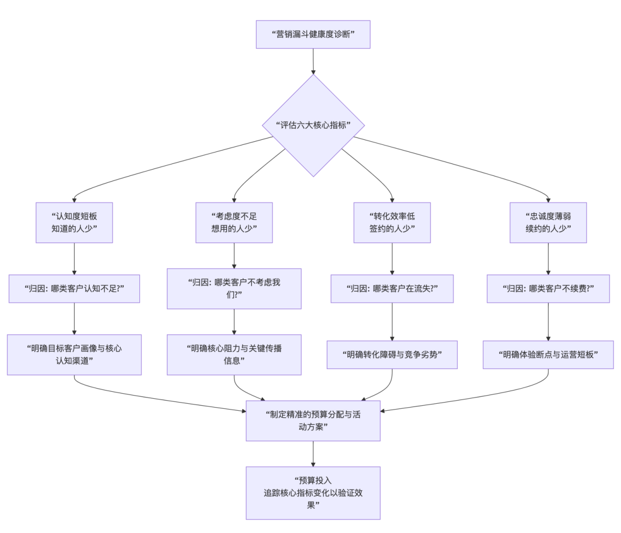 预算分配的前提是明确“钱要解决什么问题”,这就需要通过生意诊断找到营销链路的核心断点。