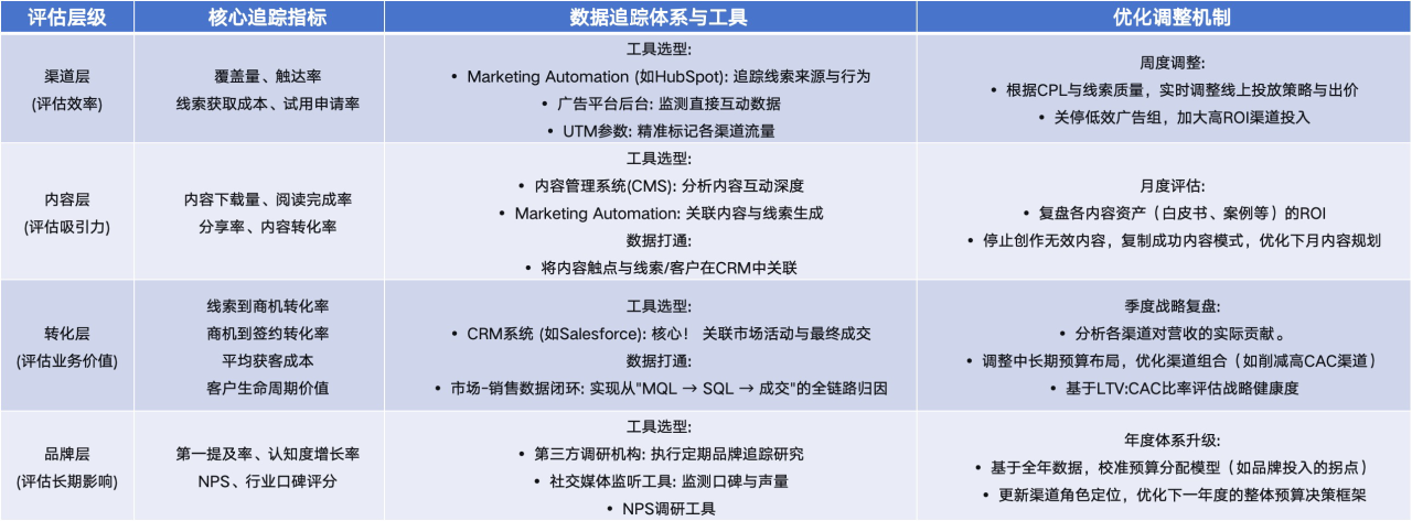 采用Marketing Automation工具追踪线索全链路;通过CRM系统关联市场活动与签约数据;借助第三方监测工具评估品牌指标变化。