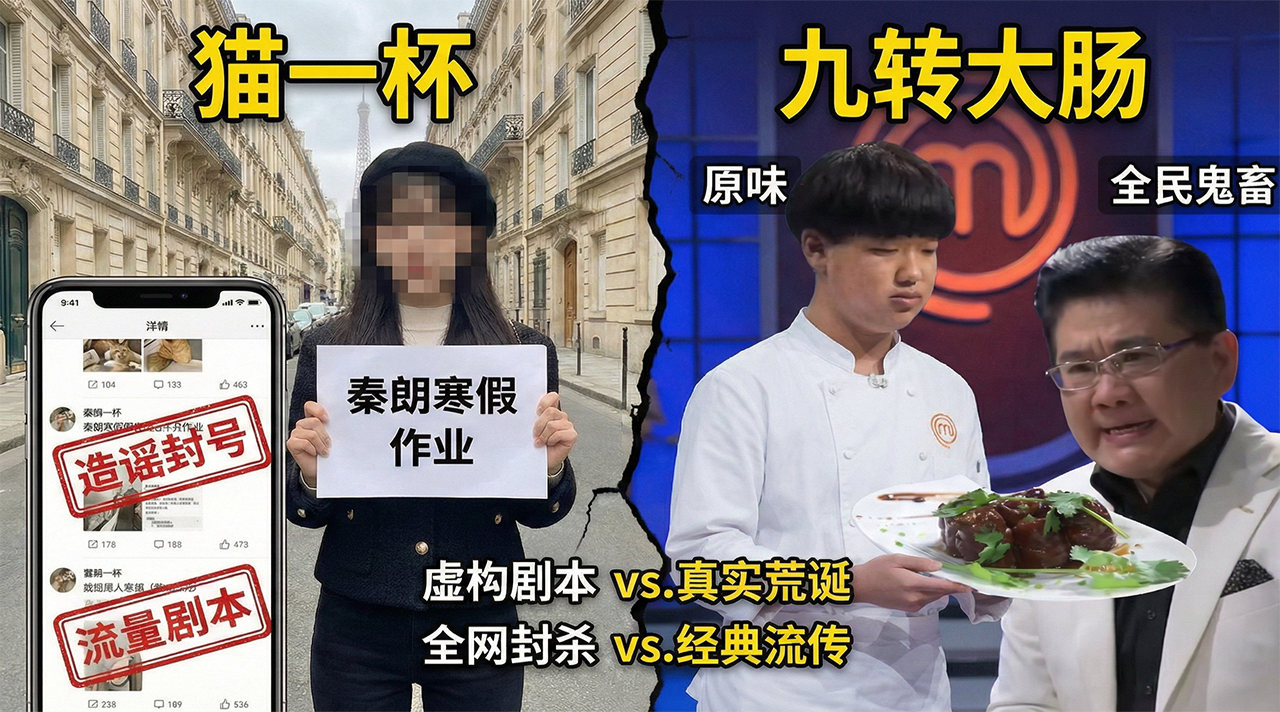 同样是“充满争议”的流量,2012 年《顶级厨师》选手俞涛的“九转大肠”在 2023 年翻红,却走出了完全不同的路径。 那段 37 秒的“保留大肠原味”视频在 B 站砍下 1700 万播放,引发了全网鬼畜和造梗(如“当代阳谋”)。但这波流量之所以能沉淀为优质资产,核心在于俞涛做对了三件事: