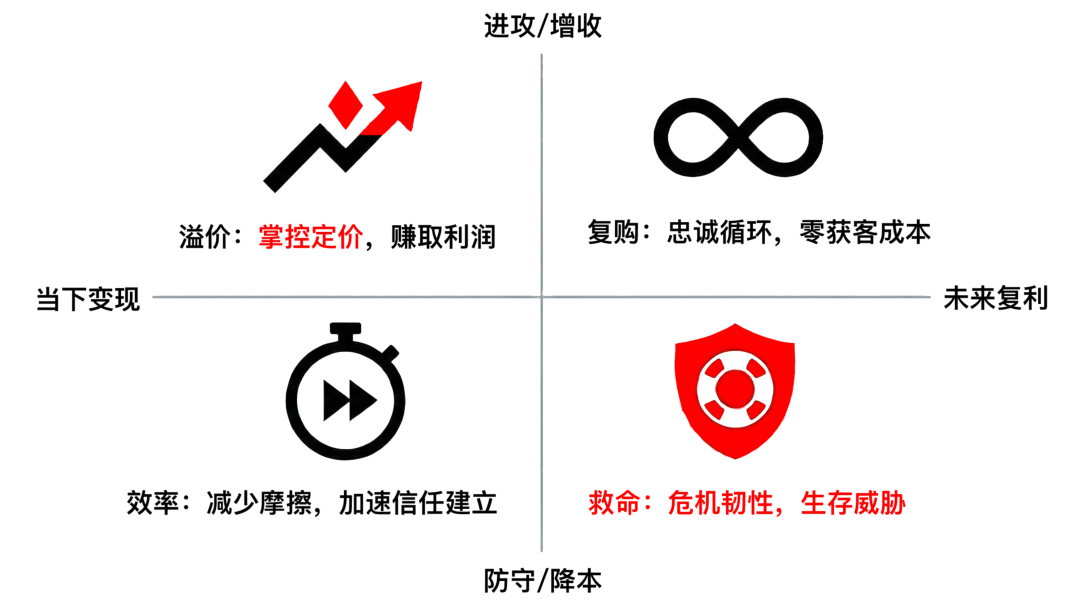 - 溢价指标:更加关注复购率、自然流量占比和NPS,这就是我们在长期主义视角下希望信任带来的长效红利。