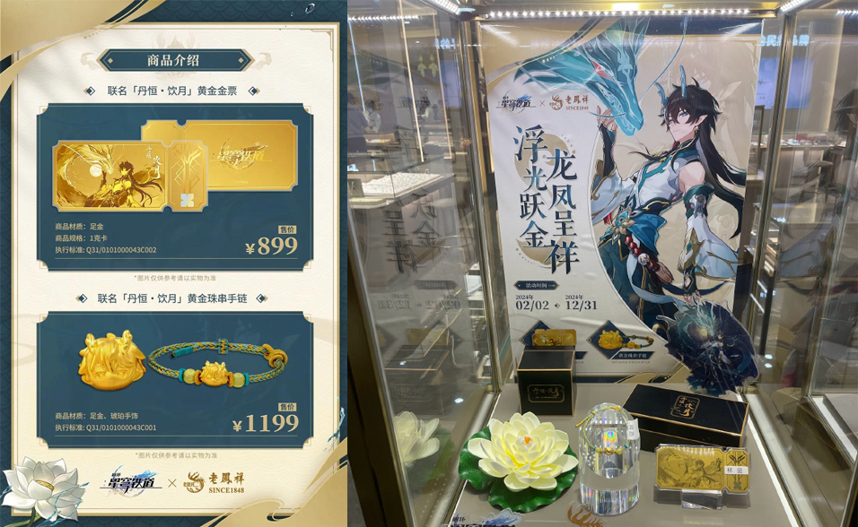 此外,跨界联名产品,亦是融合的典型。老凤祥与《崩坏:星穹铁道》推出的联名金钞,融合黄金保值功能与IP情感价值,发售即售罄,二手市场更出现溢价,成为经典融合范例。
