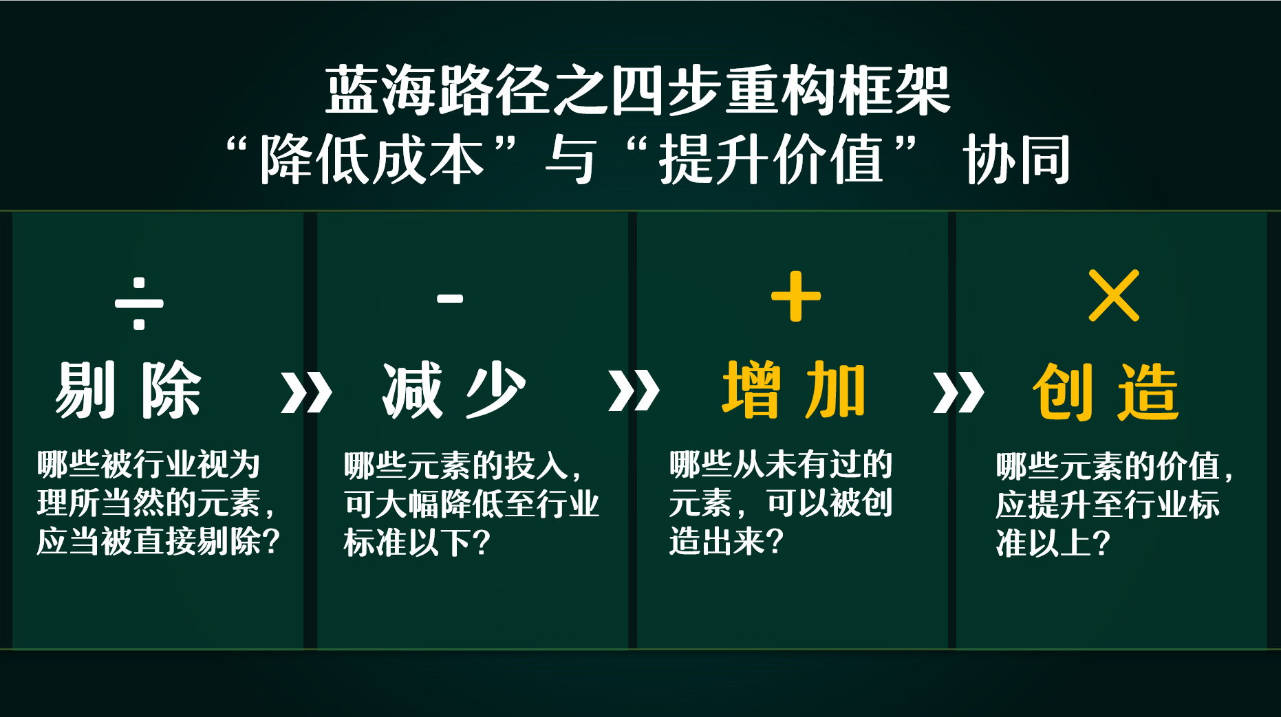 - 五、蓝海路径2:加减乘除——四步重构框架