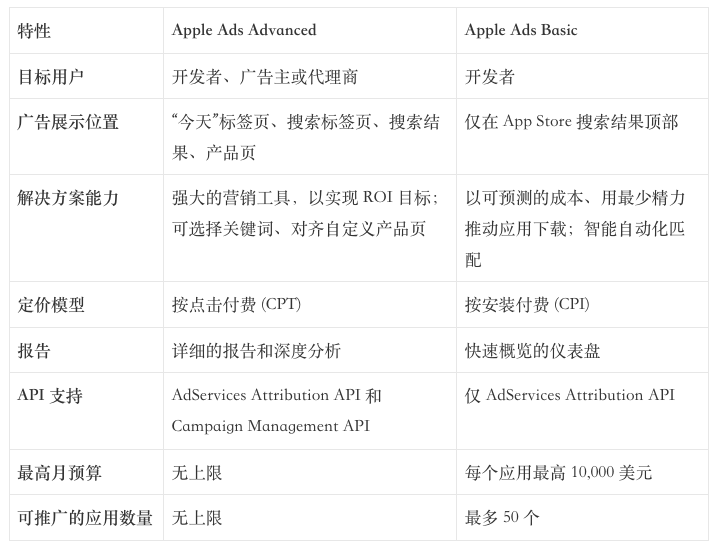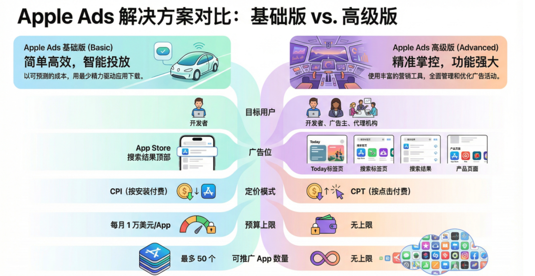 1. Apple Ads 解决方案:Basic 与 Advanced