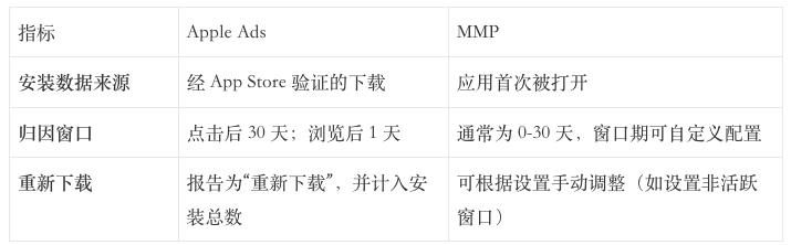 然而,需要注意的是,由于方法论的差异,MMP 报告的数据可能与 Apple Ads 官方报告存在不一致。理解这些差异对于准确解读数据至关重要: