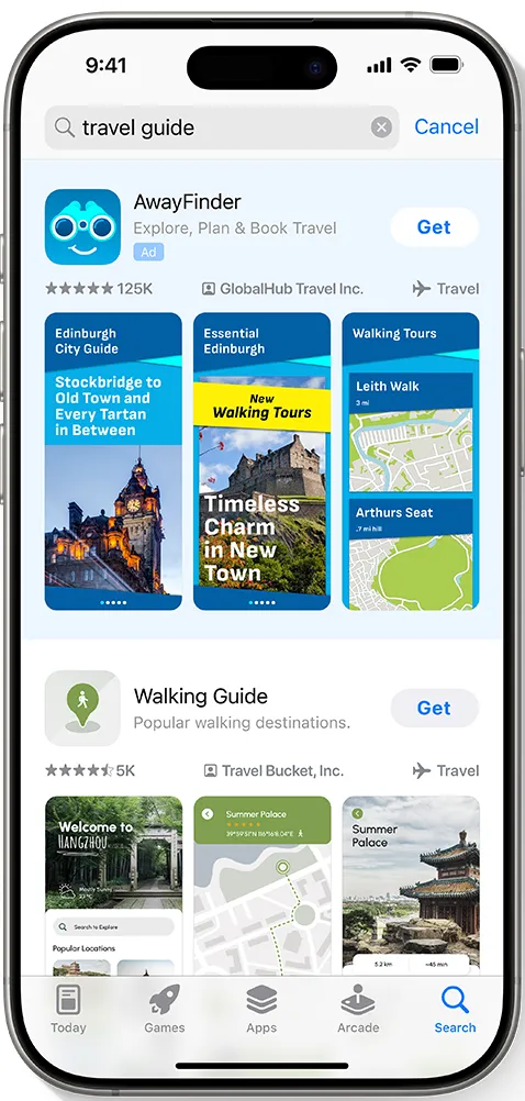 当用户首次进入 App Store 时,广告将完全可见,显著展示应用名称、图标和副标题。这一位置对于新内容发布、特别活动和季节性推广尤其有效,能迅速吸引大量用户的关注。