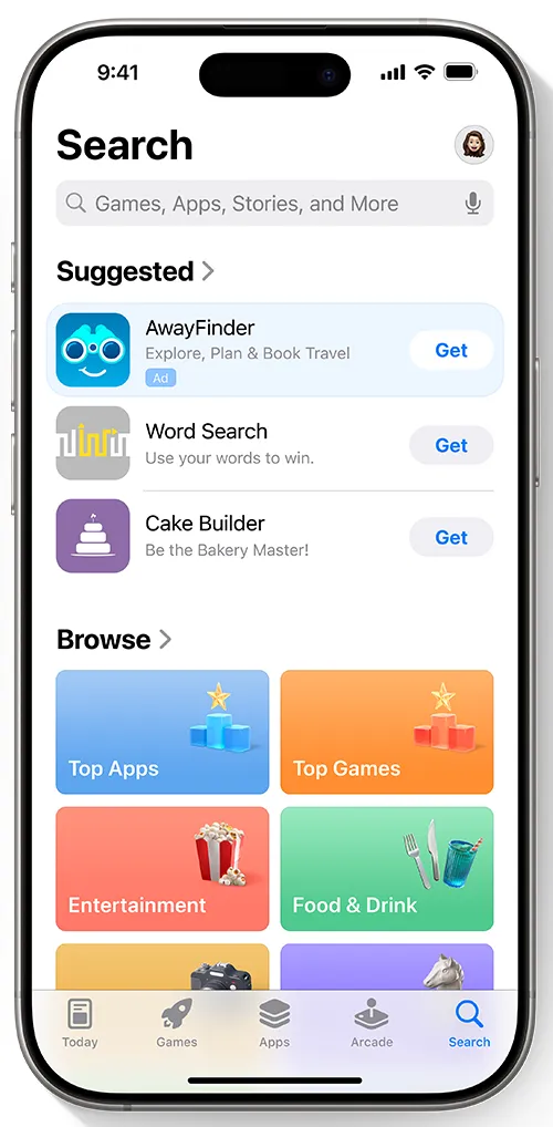 • 简化的操作: 开发者无需手动设置关键词或受众。Apple 的智能自动化技术会分析应用信息,自动将广告匹配给最感兴趣的用户,从而最大化推广效果,整个过程简单高效。