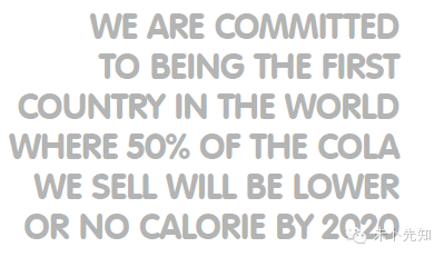为此,可口可乐(英国)制定了公司业务战略:到2020年,将成为世界上第一个国家,出售的可乐里,50%是低脂或无脂的。(目前是43%)