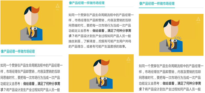 只要是关注STC的用户,不难发现STC90%文章的插图都是根据内容专门设计的。对于文章插图,小编建议能设计就尽量不要选用网上的图片,一是因为下载的图片与文章所表述的内容存在差距,二是对插图进行设计,不仅能让用户感受到内容的精致,同时也能体会到文章的质感,从而直接提升微信号的品牌形象。