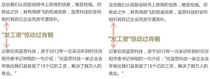 查看文章的时候我们可能会看到上面的这种情况,乍看之下可能大家并不会觉得有何问题,但是设想一篇文章的小标题和段落之间如果没有距离的区别,很可能会让用户产生内容混乱的错觉,读起来人为制造困难,同样也不符合金字塔原理。小编根据自己的个人经验建议,可以调整“段后距”让两部分在空一行的基础上再增加“10-15”的距离(可在图文编辑页的工具栏中找到),标题靠近本段文字内容即可。这样的目的是为了让用户在阅读的过程中更清晰每个部分的划分,凸显金字塔原理在图文编辑中的价值。