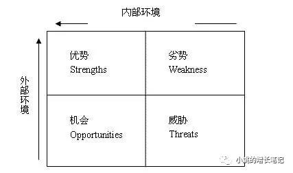 这里举几个常用的分析法,SWOT分析法通过企业外部环境和内部环境,能清晰的分析出自身优势劣势、机会威胁,缺点是这个分析法不能分析到用户层面。