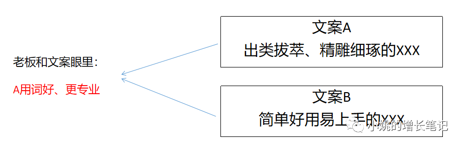 从技术角度评价谁文案功底好,应该都会觉得:文案A用词华丽、比文案B专业。