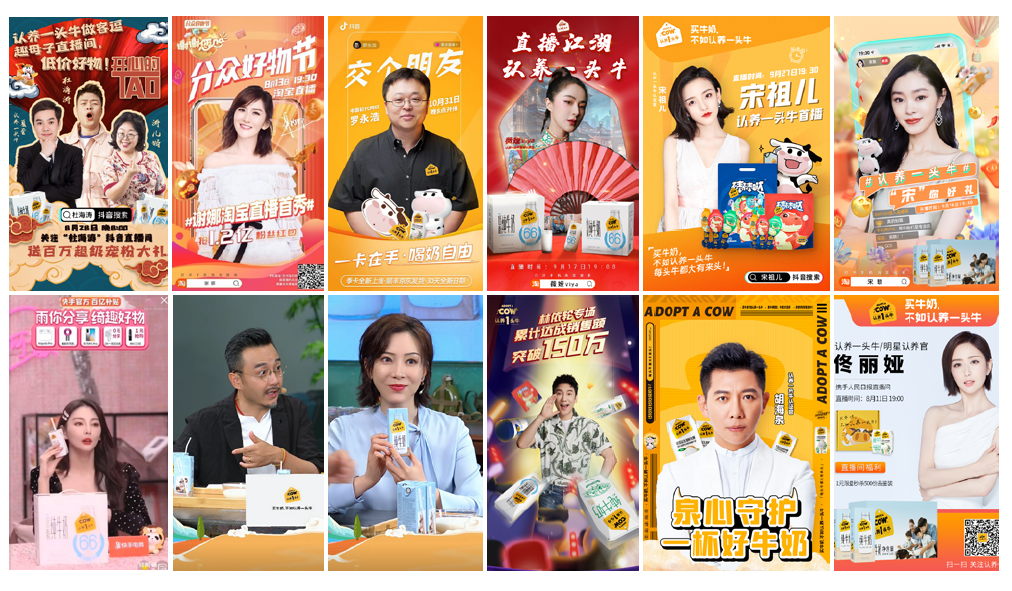 2019年,认养一头牛开始在直播领域发力。当下,公域平台其以淘宝、抖音为主要阵地与薇娅、罗永浩等知名带货达人展开合作,私域平台则开启对视频号的探索,希望在私域直播的新场景中,与消费者建立深度连接。