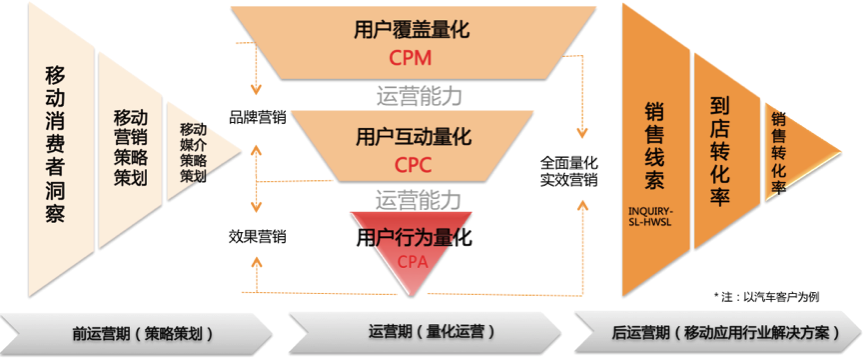 十,接着的再次,关于移动营销或者说当代营销的模式思路。最早由品牌主、媒介和AGENCY三方构建的模式,是基于消费者洞察——营销策略和策划——创意策划与制作——媒介策略与策划执行,到媒体投放,基本流程就走完了;这2-3年,数字和移动AGENCY、媒体推动,电子商务和行业内广告垂范,基于量化结果的全面运营优化开始流行,基本上把CPM打到了CPA;但今年开始,出于对于量化结果到A后的转化效率问题,以及竞争和博弈导致,少数先行者开始摸索在移动端上的全面解决方案,推动从受众——用户的端到端优化系统,核心词,就是闭环,全链条。目前可以看到方向的,是基于电商的闭环,基于线下的活动和场所闭环,以及基于移动应用的系统闭环。当然,本质上,策略——内容——渠道的核心结构并没有改变,改变的是打通最后一公里,以及系统系优化。需要关注的是AGENCY公司并不会死,但大型4A的服务费+媒介规模化返佣的模式行将崩溃,媒介巨头的垄断集中趋势越来越厉害,可谈判主体最终只剩下几个,基于专业服务技能的精品AGENCY和基于行业的专业AGENCY 可能是个方向;