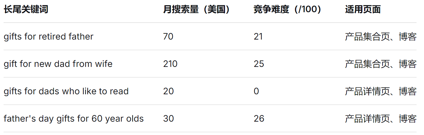针对”gifts for dads who like to read”这类更细分的需求,我们在产品详情页和博客文章中推荐书籍、阅读灯、书签等产品,精准匹配”安静爸爸”的形象。