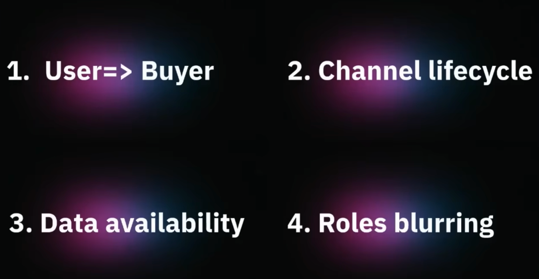 Elena 回顾了大约五年前整个行业开始疯狂讨论 Product-Led Growth (PLG,产品驱动增长) 的原因。她坦白说这个概念确实被过度炒作了,但她更想讲的是为什么 PLG 会突然变成热词,这背后其实是市场发生了四个根本性转变。
