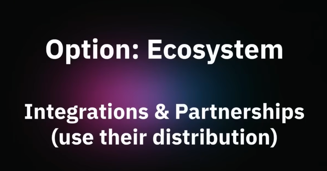 第五个策略也是老生常谈但依然重要:生态系统集成,还有合作伙伴关系。这个非常重要,因为与其辛苦地开拓自己的分销渠道,不如说:嘿,你已经有分销了,让我站到你这边,通过集成或合作关系进入你的分销渠道。这是美妙的策略,但需要先发优势。所以不要等待,如果有人向你伸出手,你必须抓住。否则竞争对手就会抓住这个机会。这是一个很少有人竞争的渠道,因为有太多手动的事情需要处理。Elena 特别提到两天前 OpenAI 发布了新的集成机会:应用商店 (App Store)。所有人都应该关注这个,因为这可能是下一个分销转变,可能是 OpenAI 第一次真正为我们提供分销优势。