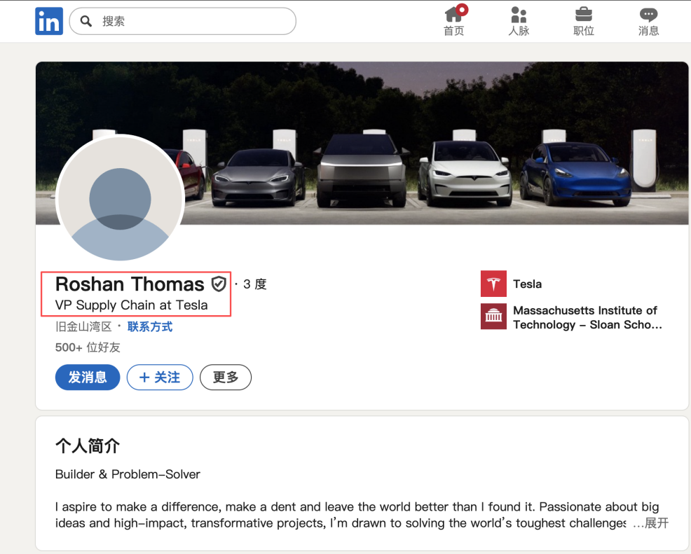 例如我搜:Tesla+Procurement Manager site:linkedin.com: