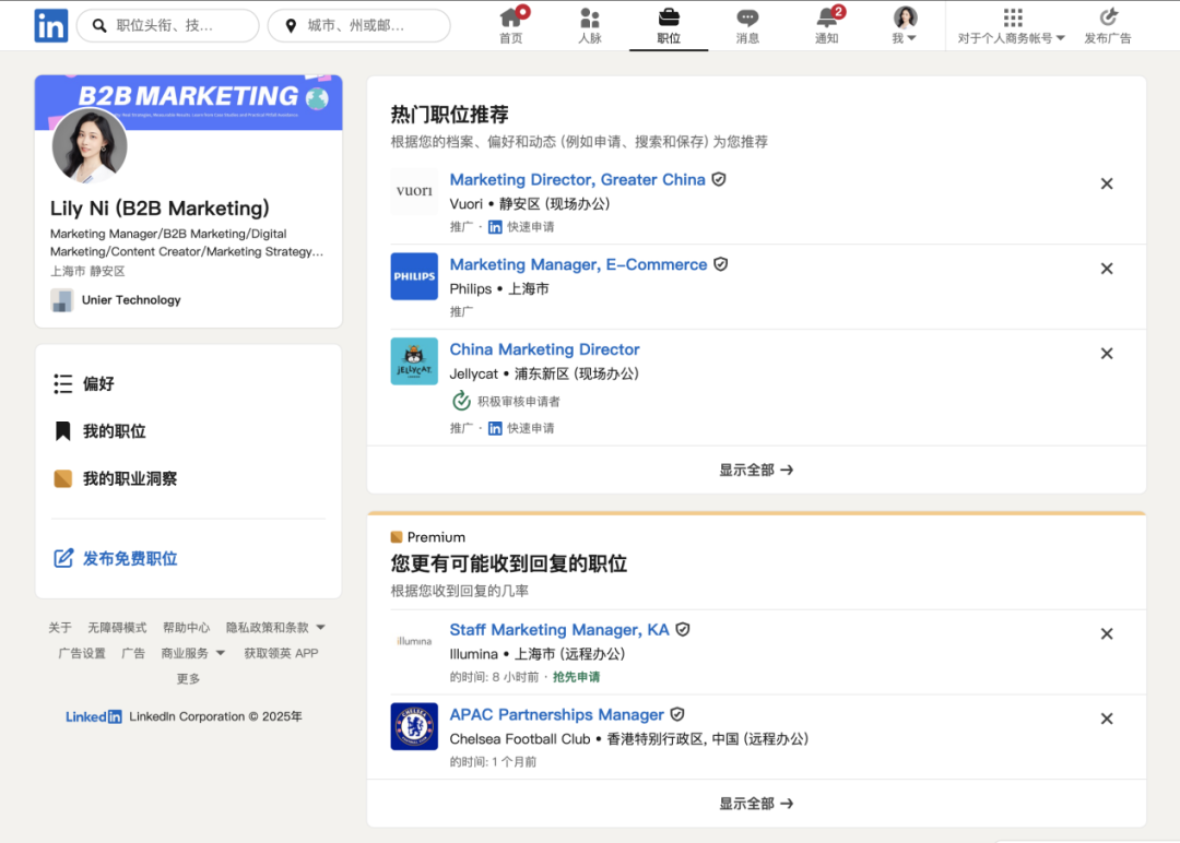 - 工作经历与公司说明中嵌入行业高频词,增强账号与搜索算法的匹配度。