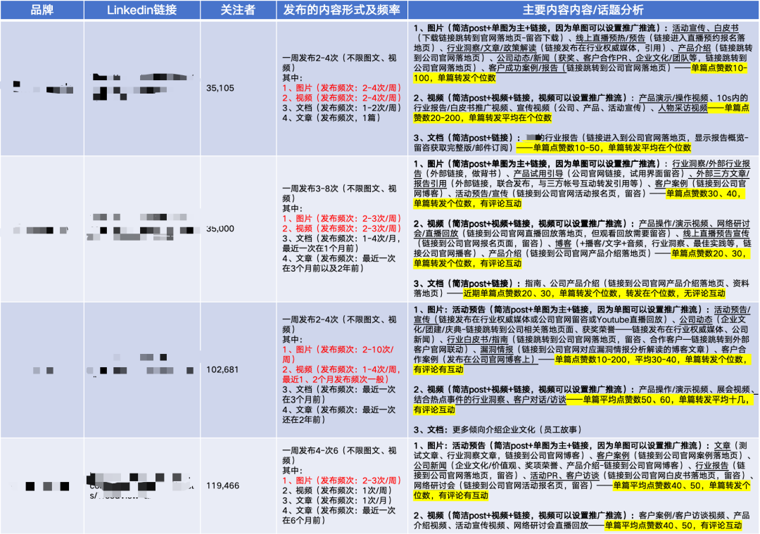 附:个人之前做的企业竞品在linkedin上的内容、传播策略,如下图: