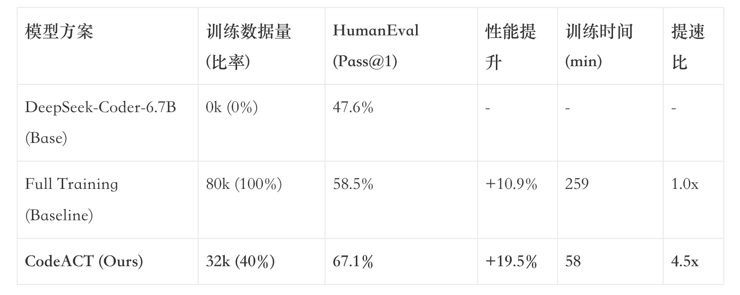 CodeACT 降低了开源社区复现顶级代码模型的门槛。它证明了,普通算力通过巧妙的策略也能挑战巅峰。