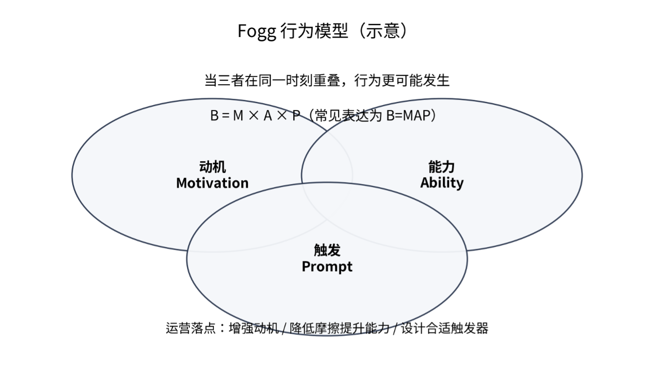 Fogg 模型提供了一个极实用的诊断框架:当某个行为没有发生,要么动机不足,要么能力不足,要么触发不到位。