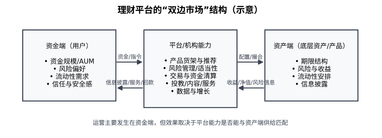图9:理财平台的“双边市场”结构(资金端—平台能力—资产端)