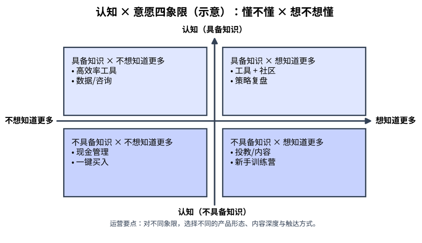 图5:认知×意愿四象限(示意):懂不懂 × 想不想懂
