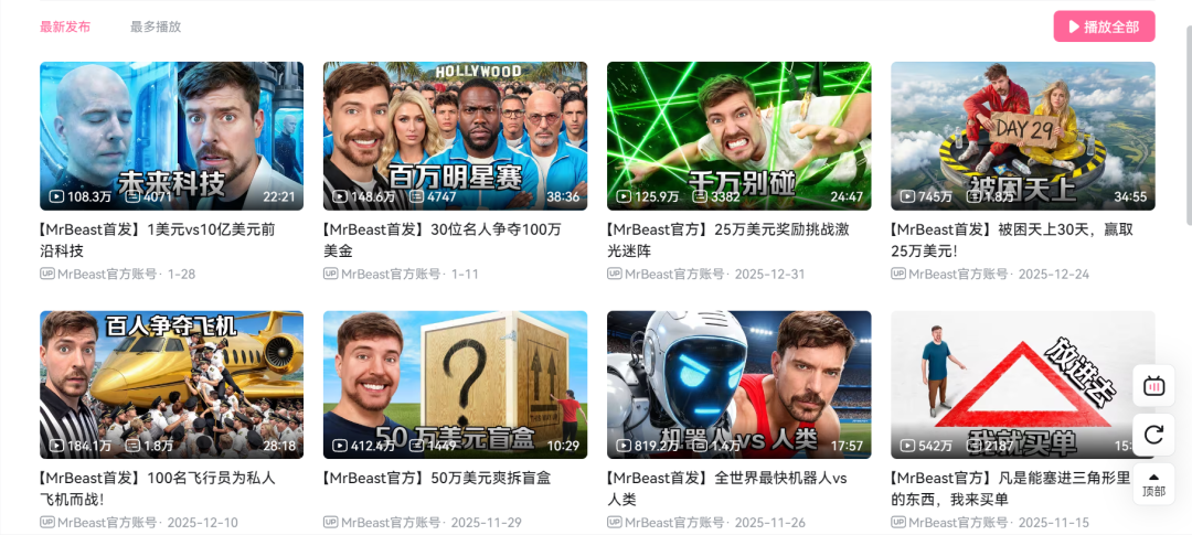 其实不止野兽先生,如今有许多这类视频,都毫无例外的成了流量宠儿,收获了巨大播放量和粉丝。撒钱内容为何如此讨人喜欢?跟随「克劳锐」,一起看看吧~