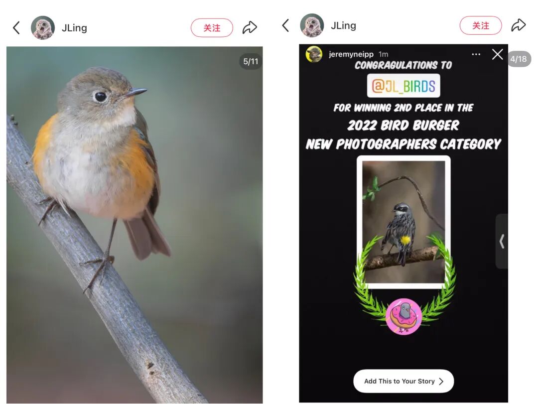 @JLing 则是一名有着四年观鸟体验的鸟人。在一堂鸟类学实验课上,他第一次拿起望远镜,在大学校园中记录下9种鸟类。而这四年里,他拍下了1065种小鸟,去年还拿到了奥杜邦鸟类摄影大赛视频组冠军。