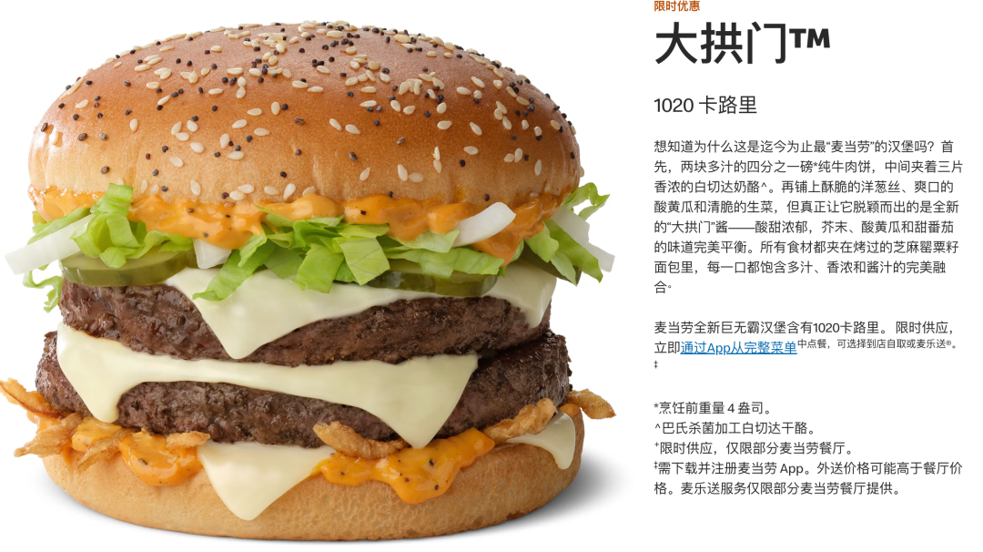 从品牌历史来看,推出大个头汉堡并非偶发行为。早在当年巨无霸诞生时,大就是核心卖点之一。巨无霸这个名字本身就强调尺寸与分量,它所传达的是一种超越日常标准的满足感。
