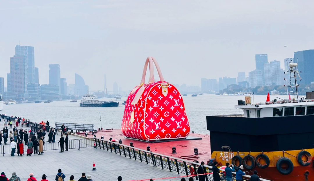 类似的例子并不少见,巨型 LV 包、山姆的巨型方便面、巨大草莓熊装置,都曾在社交网络上引发讨论。尺寸越极端,越容易被算法捕捉。平台偏好视觉冲击,用户偏好新奇体验,大恰好满足了这两种偏好。
