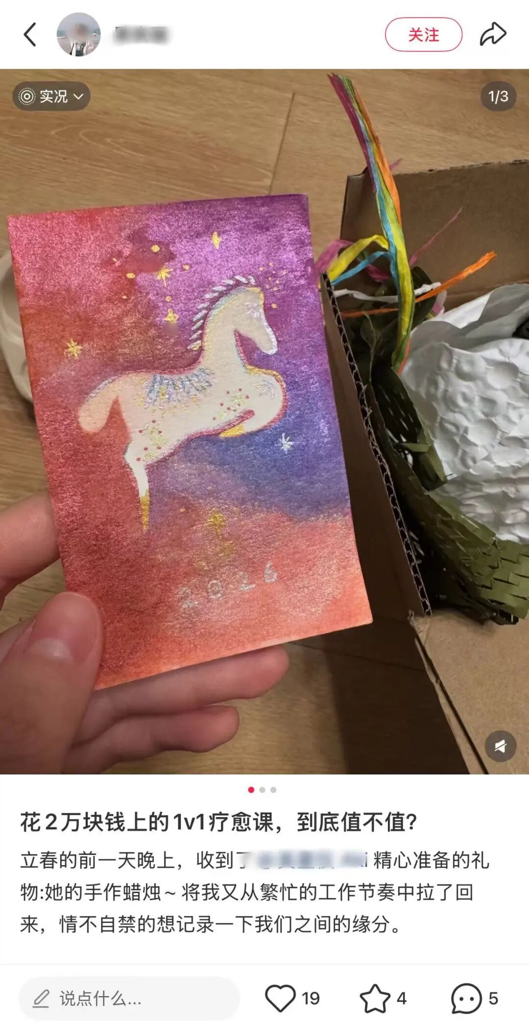 还有艺术疗愈课程,属于是这个赛道客单价最高的品类之一。绘画、音乐、舞动等形式多样,但价格却不含糊。有网友晒出截图,“花2万块钱上的1v1疗愈课,到底值不值?”