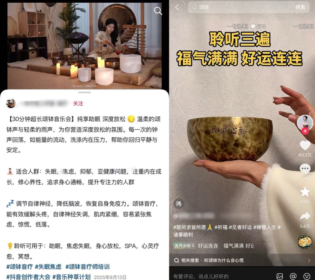 你有没有假期失眠刷抖音刷到这样一个画面:一位主播在一堆大小不一的“碗”旁边,手持木槌,有节奏地敲击,悠长低沉的声音顺着屏幕漫出来。